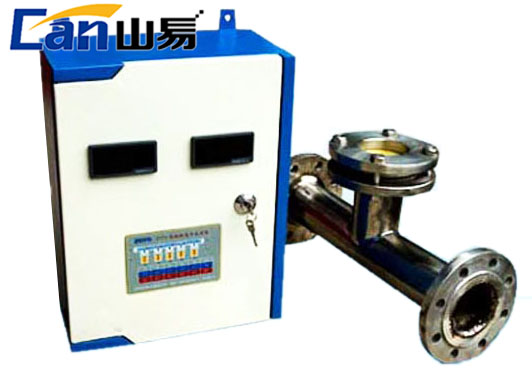 銅銀離子滅菌器由主機和副機(銅、銀電極室)兩部分組成。當水流過副機電極室,主機產生的低壓直流電能供給副機的電極,電極由兩個金屬陽極和兩個金屬陰極組成,電流通過時陽極會產生銅、銀離子并擴散到水中,使水得到凈化。銅、銀離子殺菌功能是由帶正電的銅銀離子和帶負電的細菌細胞相結合,銅銀離子穿透細胞壁與細胞內特定部位的DNA及RNA相結合,破壞細菌細胞的蛋白酶和呼吸酶,造成細菌細胞的溶解和死亡。試驗證明,0.4mg/L的銅離子和0.04 mg/L的銀離子及一定量的其它消毒劑聯合使用效果較好。由微型電腦控制器通過控制直流電流的大小來控制產生銅銀離子的數量;并設置時間控制極性轉換,防止電極不平等消耗,當兩電極已完全消耗盡時,更換一對新的電極便可繼續使用。